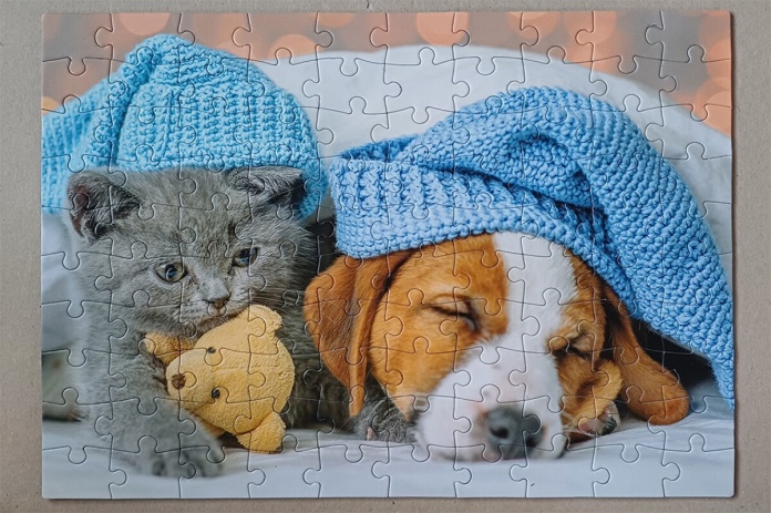 Puzzle 100 Cute Kitten and Sleepy Dog